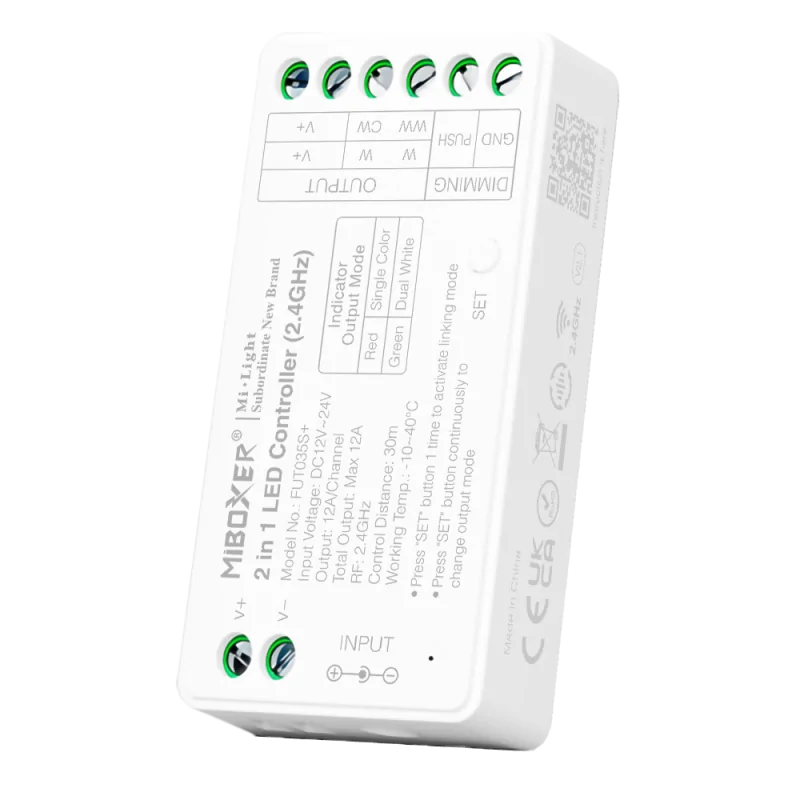Le Contrôleur RF pour Strips LED de la marque EVA est la solution technique idéale pour piloter vos rubans LED en blanc dynamique. Ce module intelligent permet de gérer aussi bien le CCT fixe (choix d'une température précise) que le CCT variable (passage fluide du blanc chaud au blanc froid). Grâce à sa technologie radiofréquence (RF), il assure une réception stable et une gradation fluide sans scintillement, permettant de créer l'ambiance lumineuse parfaite selon le moment de la journée.