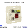 Prise Mixte R-TV-RJ45 Cat.6A UTP Étoile (Réf. 21535) est une solution de connectivité murale qui combine le signal coaxial (Radio et TV) et le réseau informatique (RJ45). Conçue pour un montage en étoile, elle offre une performance de Catégorie 6A (Très Haut Débit) et peut être complétée par une connexion Fibre Optique SC-APC. Elle s'installe via des bornes automatiques.