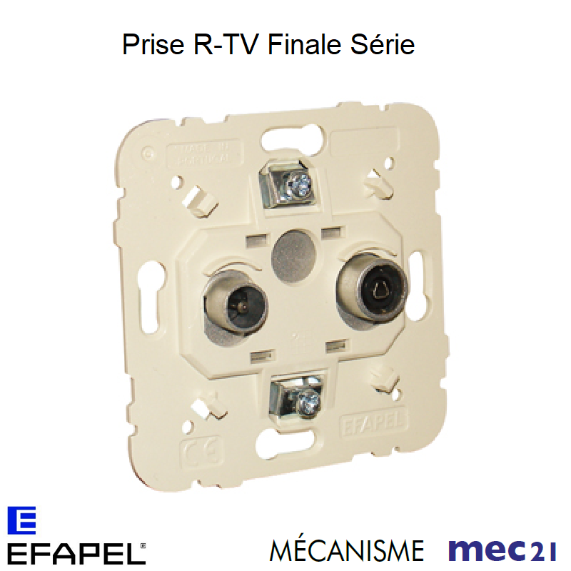 Prise R-TV Finale Efapel (Réf. 21554) est le mécanisme standard pour recevoir la Radio (R) et la Télévision (TV) en montage individuel (étoile). Elle assure une qualité de signal optimale en fin de ligne et s'installe facilement grâce à ses bornes automatiques.