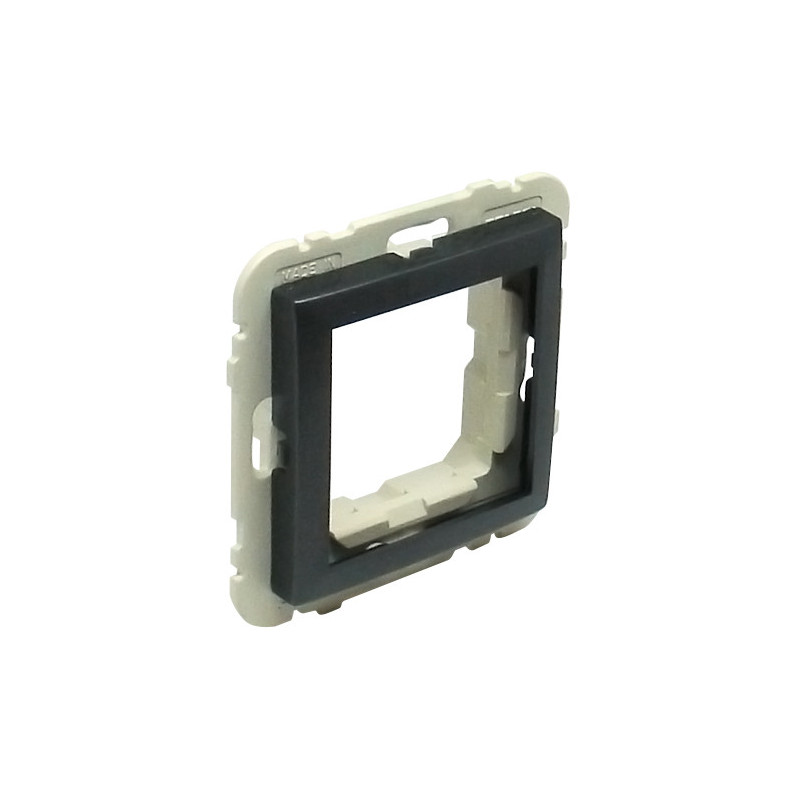 L'Adaptateur Universel est un cadre réducteur de la gamme Logus 90. Il comble l'espace standard du mécanisme Mec21 de Logus 90 afin d'accueillir un module de la série Quadra 45 (Q45). Cette pièce est conçu pour intégrer des modules VDI (Voix, Données, Images) ou d'autres mécanismes au format Quadra 45 (Q45).
