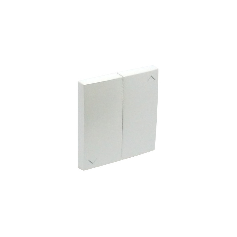 Doigt pour Poussoir Double de Persiennes est l'enjoliveur spécifique à deux touches pour la commande de volets roulants ou stores motorisés de la gamme Logus 90 de couleur Glace. Il est marqué des symboles de Montée/Descente pour une identification claire de la fonction.