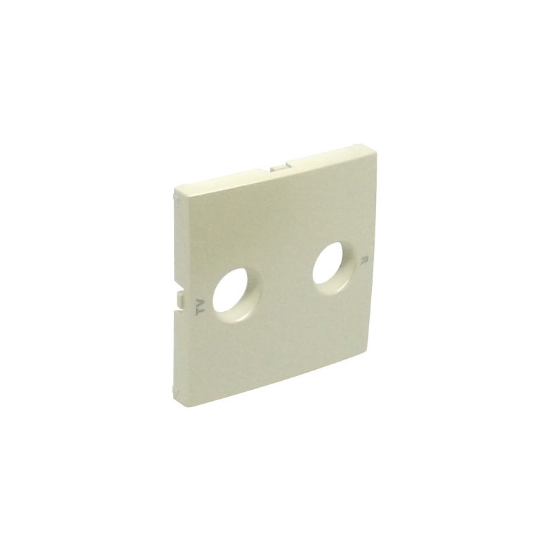 L'Enjoliveur de prise R-TV est un cache central de finition conçu pour les mécanismes de Prise d'Antenne Radio et TV, il comporte les ouvertures et marquages nécessaires pour les deux connecteurs coaxiaux.