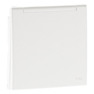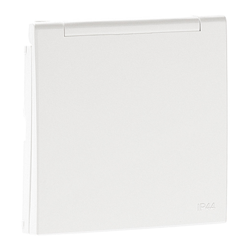 Enjoliveur (ou Centre) pour Prise de Courant Française 2P+T (2 Pôles + Terre), doté d'un Couvercle de Protection, assurant un niveau de protection IP44 rendant la prise résistante aux projections d'eau et aux corps solides. Il est idéal pour les pièces humides (salle de bain, cuisine, buanderie) ou les zones extérieures abritées.