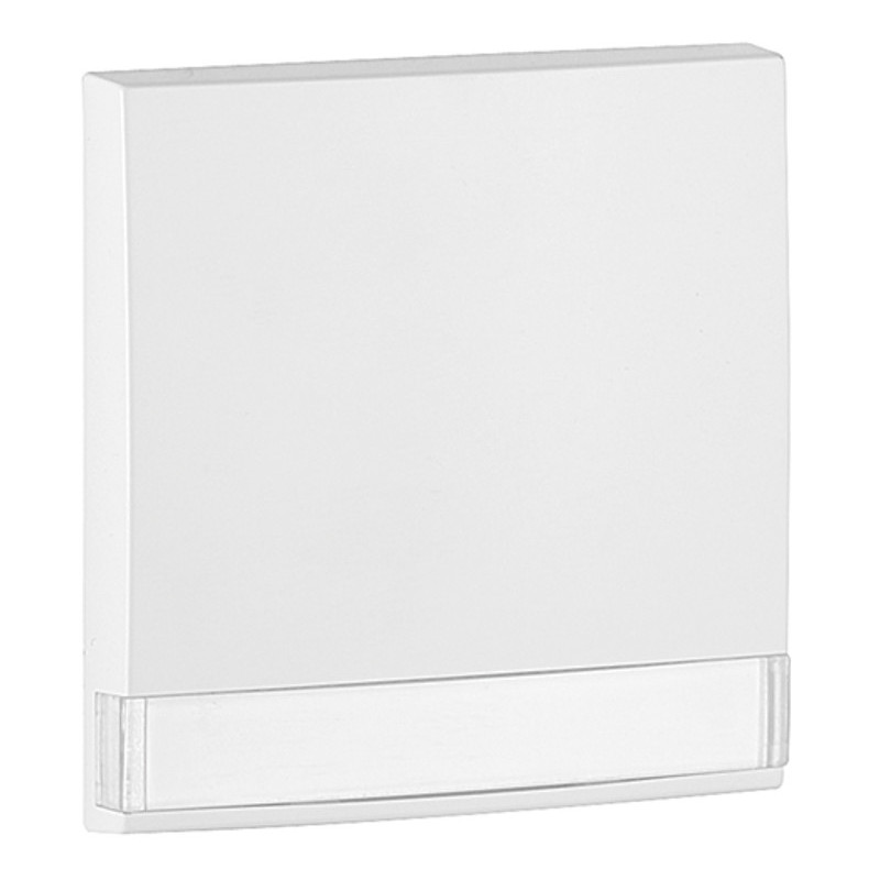 Sa particularité est d'intégrer une zone transparente ou un porte-étiquette discret permettant d'insérer une petite étiquette pour identifier la fonction du mécanisme (ex: Portail, VMC, Sonnette).