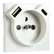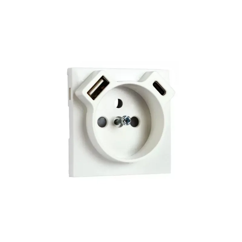 Cet enjoliveur est conçu pour le mécanisme de prise de courant française (avec terre) qui intègre un double chargeur USB (un port Type A et un port Type C) pour alimenter vos appareils mobiles.