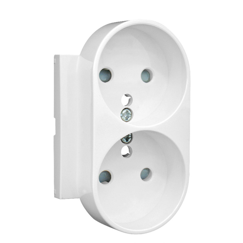Cette pièce est conçue pour le mécanisme de double prise 2x 2P+T qui intègre une protection (obturation des alvéoles) pour la sécurité. Il permet d'alimenter deux appareils simultanément.