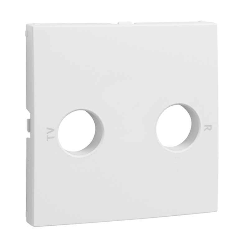 L'Enjoliveur de prise R-TV est un cache central de finition conçu pour les mécanismes de Prise d'Antenne Radio et TV, il comporte les ouvertures et marquages nécessaires pour les deux connecteurs coaxiaux.