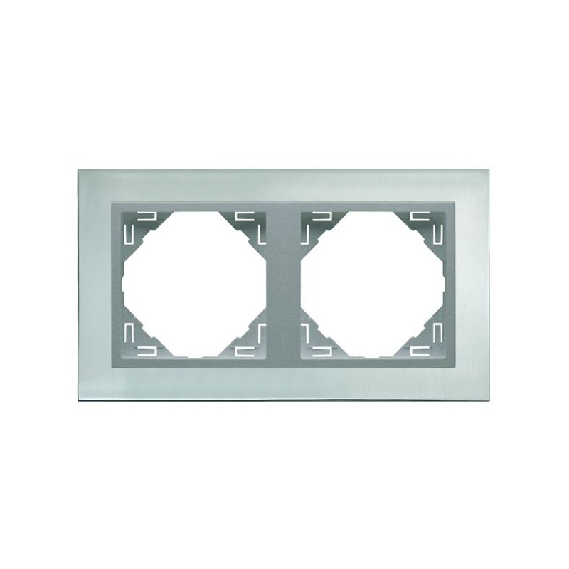 La Plaque Double est la plaque de finition décorative extérieure pour deux appareillages électriques de la série Metallo de la gamme Logus 90 (interrupteur, prise, bouton-poussoir).