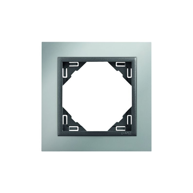 La Plaque Simple est la plaque de finition décorative extérieure pour un montage simple poste d'appareillage électrique de la série Metallo de la gamme Logus 90 (interrupteur, prise, bouton-poussoir).