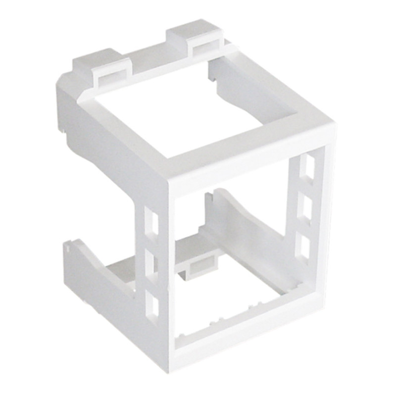 Il s’enclenche facilement sur rail DIN et offre un encombrement de 2 modules selon la norme Q45, ce qui le rend idéal pour intégrer interrupteurs, prises ou autres fonctions électriques standardisées dans des coffrets ou panneaux modulaires.