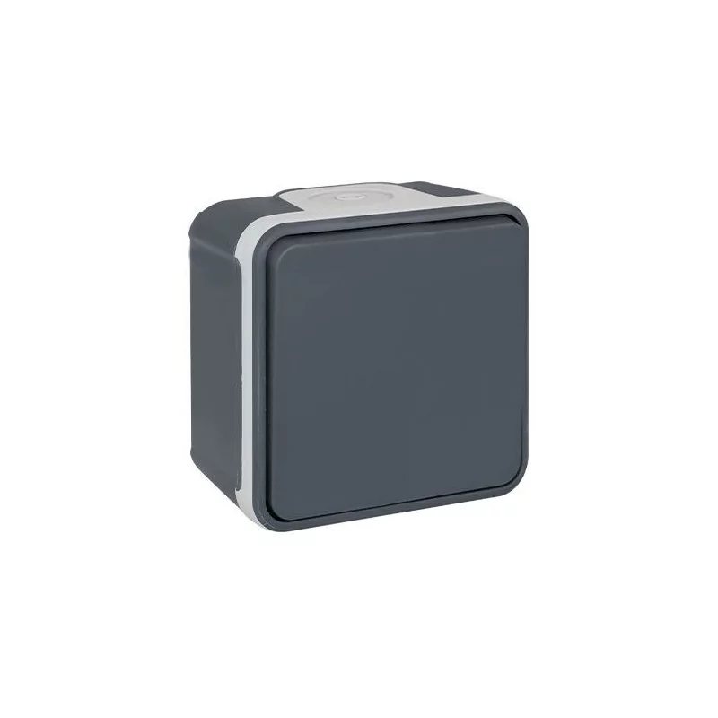 Interrupteur bouton poussoir étanche complet, Gris anthracite, Saillie, IP55