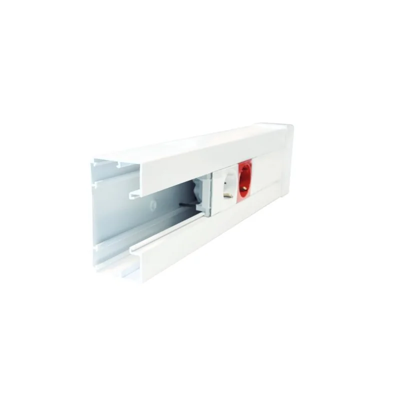 Cette variante de goulotte avec possibilité d'ajout d'appareillages est conçue pour les espaces tels que les bureaux et les commerces, où l'installation apparente de prises est nécessaire.