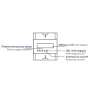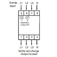 Cet appareil mesure et affiche l'énergie active (kWh) consommé par un circuit électrique tétrapolaire (3P+N) jusqu'à une intensité de 100A par phase. Il se raccorde en série sur le circuit mesuré. La vitesse de clignotement de la DEL métrologique en face avant ainsi que le générateur d'impulsions sont proportionnels à l'énergie consommée.