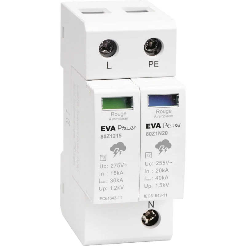 Courant maximal de décharge (Imax) 8-20µs : L-N=30kA | L-PE=30kA | N-PE=40kA.