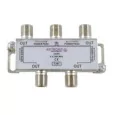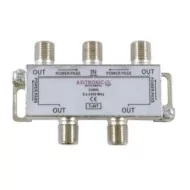 Répartiteur 4 sorties petit format avec boîtier en nickel. Répartiteur terrestre et satellite avec passage de courant.