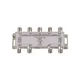 Répartiteur 8 sorties petit format avec boîtier en nickel. Répartiteur terrestre et satellite avec passage de courant.